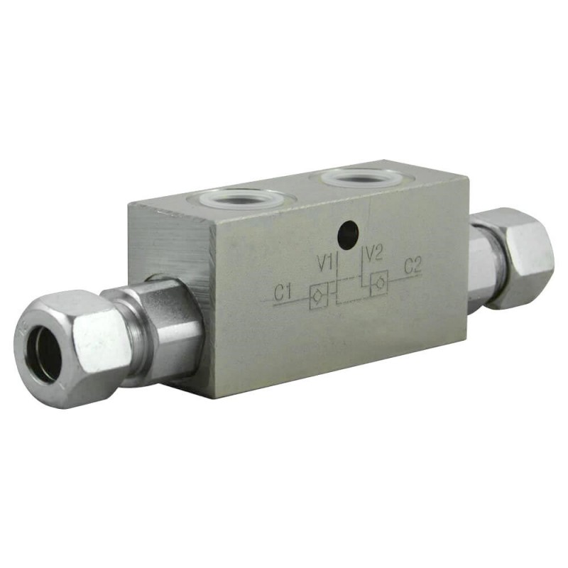 Dual pilot operated check valve 3/8 8bar banjo inside & pipe 12L